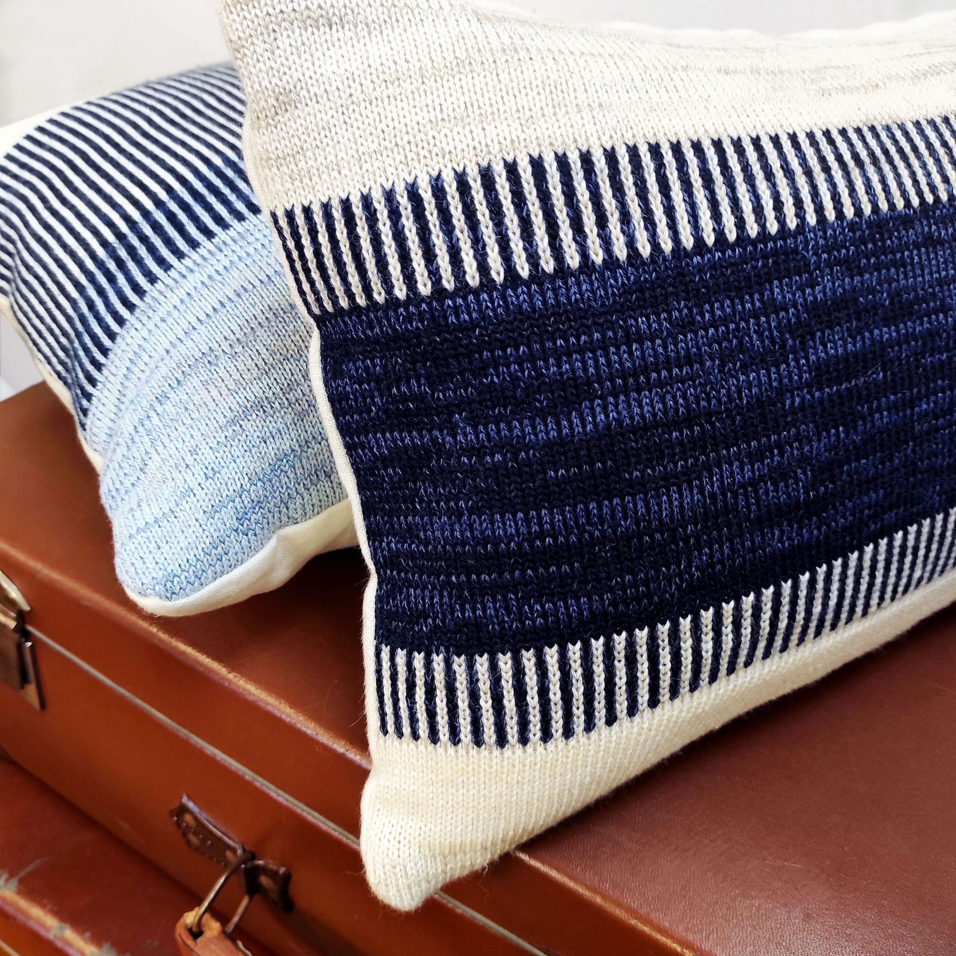 Dé-lignes . coussin rectangulaire // tricot laine & lin