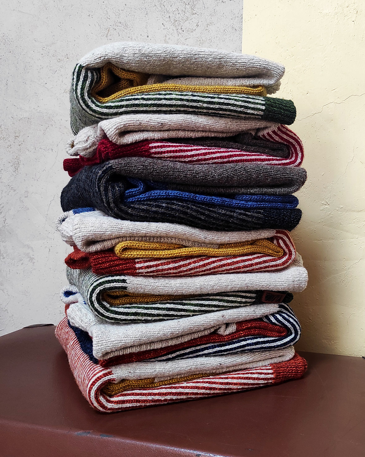 • Laine issue de stocks dormants et de fins de collections sorties d’usines bretonnes (couleurs au choix).